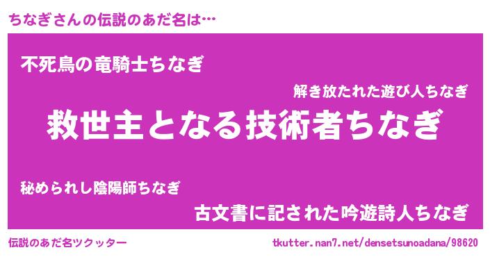 | 女子向けラノベタイトル風あだ名 | 『死神ちなぎの再婚』『闇のちなぎ』 |