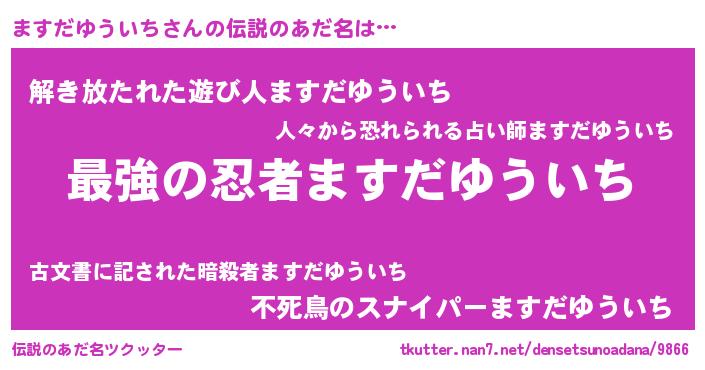 | 意味不明あだ名 | 『住所不定無職ますだゆういち(40歳)』 |
