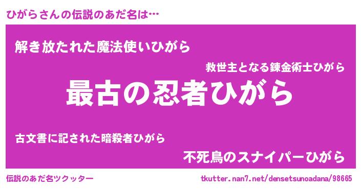 | 男性向けラノベタイトル風あだ名 | 『この素晴らしい世界にひがらを!』 |