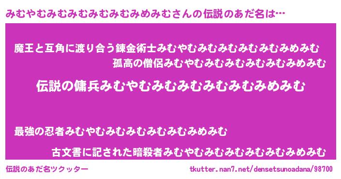 | 意味不明あだ名 | 『住所不定無職みむやむみむみむみむみむみめみむ(56歳)』 |