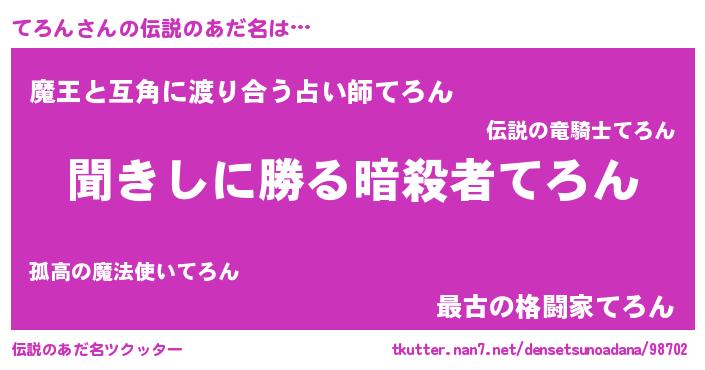 | ヒーロー風カッコイイあだ名 | 『ネオテロン』『愛の使者てろん』 |