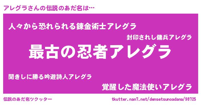 | ヒーロー風カッコイイあだ名 | 『ウルトラアレグラマン』『天弓騎士アレ』 |