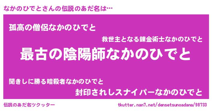 | ファンタジー風あだ名 | 『エターナルナカノヒデトー』 |