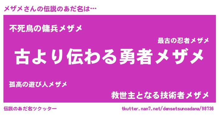 | ファンタジー風あだ名 | 『ゼメザトゥ』『メザディッシュ』 |