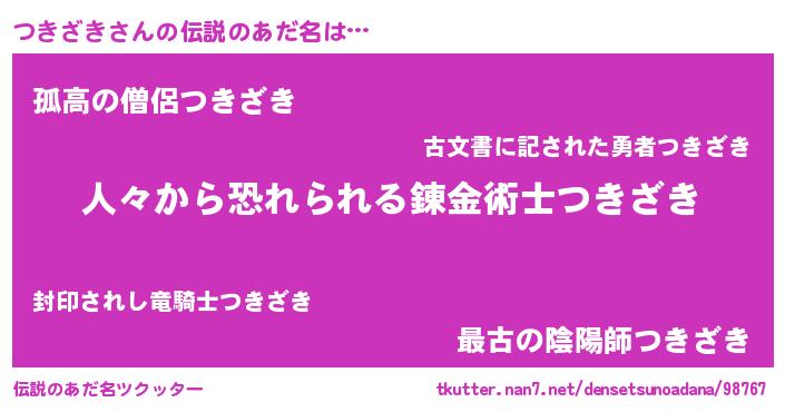 | ヒーロー風カッコイイあだ名 | 『仮面ツキダー』『慈愛の使者つきざき』 |