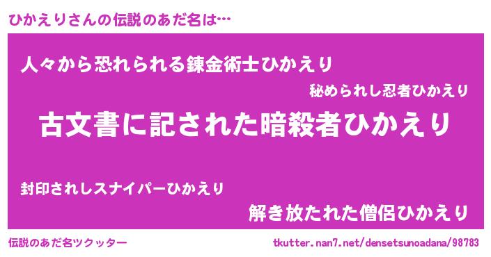 | 意味不明あだ名 | 『永久保存ひかえり』 |