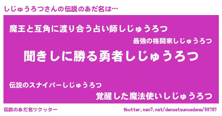 | 意味不明あだ名 | 『永久保存しじゅうろつ』 |