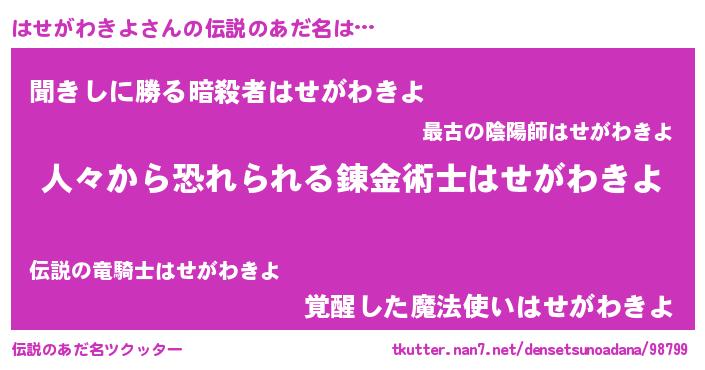 | ヒーロー風カッコイイあだ名 | 『正義の使者はせがわきよ』 |