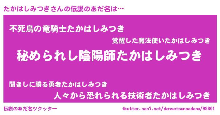 | 意味不明あだ名 | 『自称たかはしみつき』 |