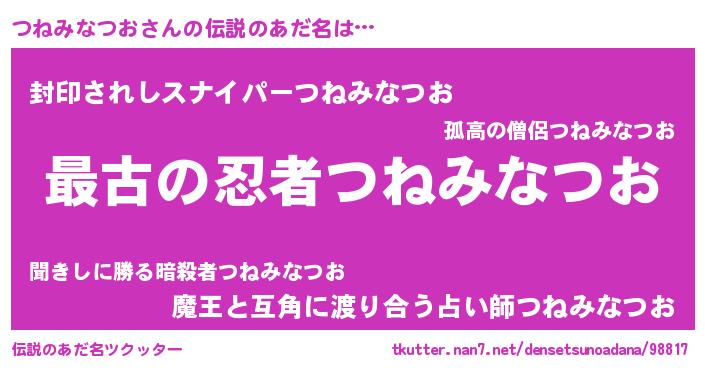 | 欧米人風あだ名 | 『ケンブリッジつねみなつお』 |