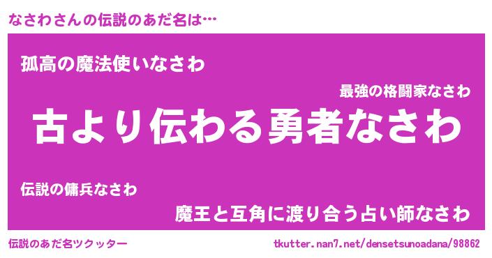 | 意味不明あだ名 | 『住所不定無職なさわ(95歳)』『自称なさわ』 |