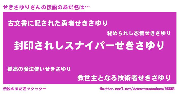 | 意味不明あだ名 | 『ペロリンせきさゆり』『自称せきさゆり』 |