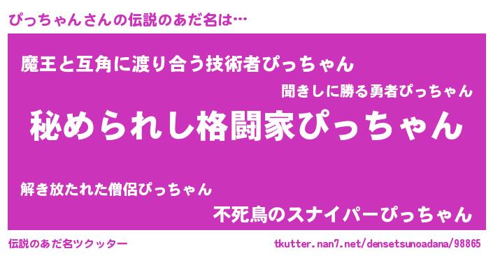 | 女子向けラノベタイトル風あだ名 | 『ぴっちゃんなんてお断りですっ。』 |