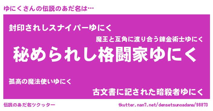 | 意味不明あだ名 | 『ゆにくフォーエバー』『ペロリンゆにく』 |
