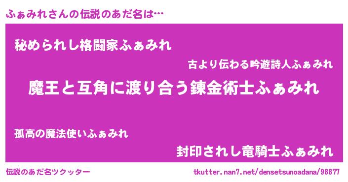 | ファンタジー風あだ名 | 『クインフット』『エターナルファミレー』 |