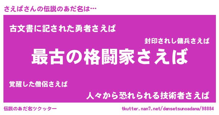| ヒーロー風カッコイイあだ名 | 『ウルトラさえばマン』『ネオサエバ』 |