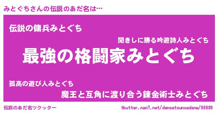 | ヒーロー風カッコイイあだ名 | 『ウルトラみとぐちマン』『仮面ミトダー』 |