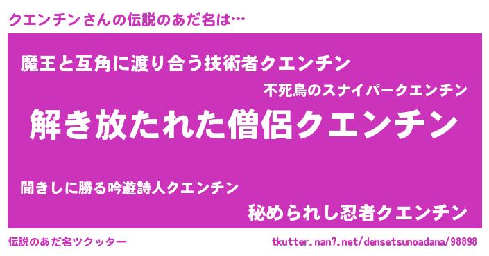 | 可愛いあだ名 | 『クエうちぇる』『クエぷりん』 |