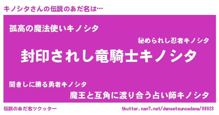 | 男性向けラノベタイトル風あだ名 | 『キノシタアートオンライン』 |