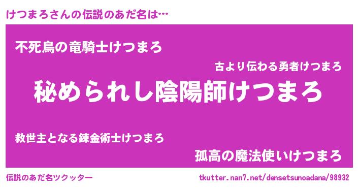| 意味不明あだ名 | 『住所不定無職けつまろ(89歳)』 |
