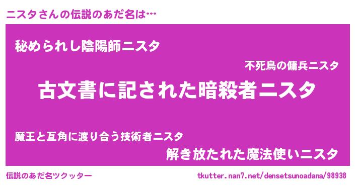 | ヘコむあだ名 | 『ニスタ(笑)』『つくし』『ニス太郎』 |