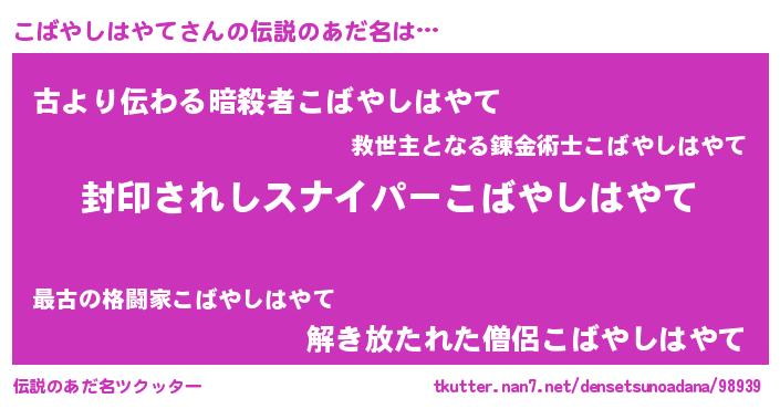 | 胡散臭い通販商品みたいなあだ名 | 『億万長者になれる霊験あらたかなお札…その名も「こばやしはやて」』 |