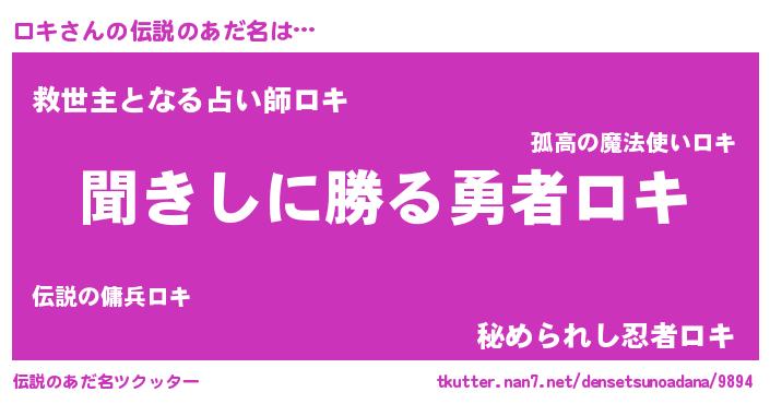 | ヒーロー風カッコイイあだ名 | 『ネオロキ』『天空の使者ロキ』 |