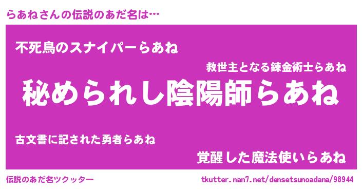 | 肩書あだ名 | 『らあね国家主席』『らあね御曹司』 |