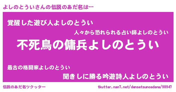| 胡散臭い通販商品みたいなあだ名 | 『モテモテ間違いなし水晶球…その名も「よしのとうい」』 |