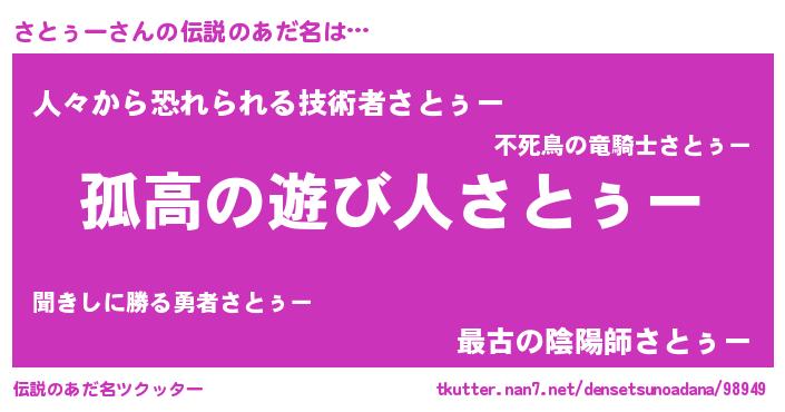 | ヒーロー風カッコイイあだ名 | 『魔戒騎士サト』『友情の使者さとぅー』 |