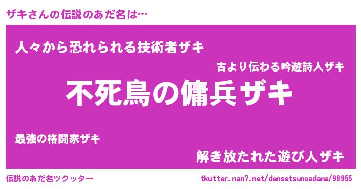 | 女子向けラノベタイトル風あだ名 | 『ザキ姫と円卓の騎士』『死神ザキの再婚』 |