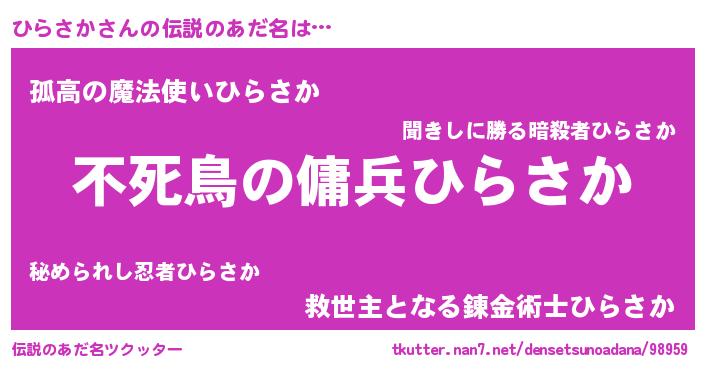 | 胡散臭い通販商品みたいなあだ名 | 『モテモテ間違いなし水晶球…その名も「ひらさか」』 |