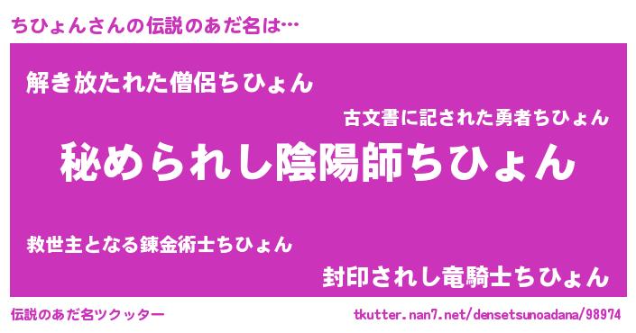 | ヒーロー風カッコイイあだ名 | 『仮面チヒダー』『ウルトラちひょんマン』 |