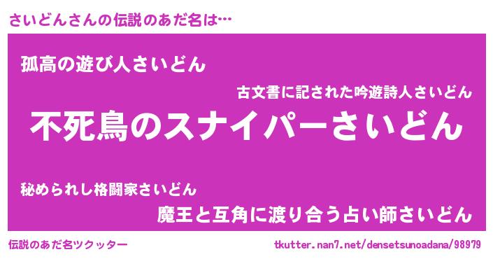 | 胡散臭い通販商品みたいなあだ名 | 『モテモテ間違いなし霊験あらたかなお札…その名も「さいどん」』 |