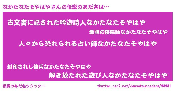 | 胡散臭い通販商品みたいなあだ名 | 『100人中100人が認めたイリジウム磁石…その名も「なかたなたそやはや」』 |