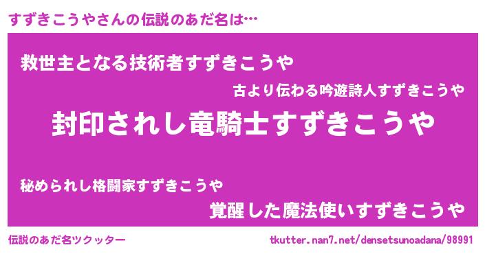 | ヒーロー風カッコイイあだ名 | 『スーパースズキコウヤ』『幻影騎士スズ』 |