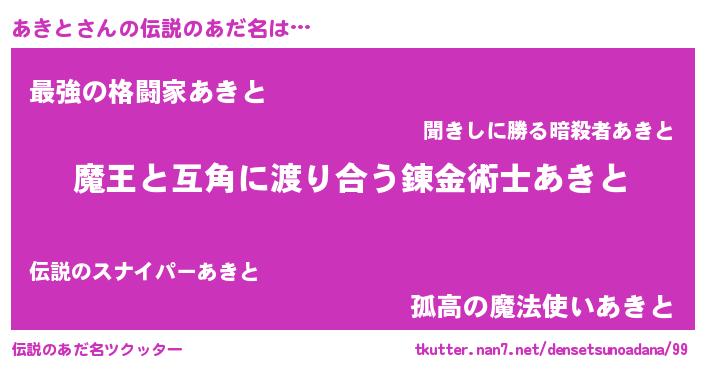 | ヒーロー風カッコイイあだ名 | 『愛の使者あきと』『最強戦士アキト』 |