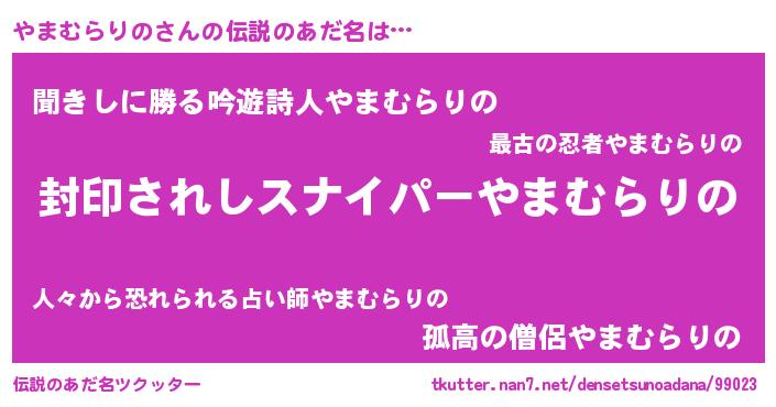 | 胡散臭い通販商品みたいなあだ名 | 『億万長者になれる霊験あらたかなお札…その名も「やまむらりの」』 |