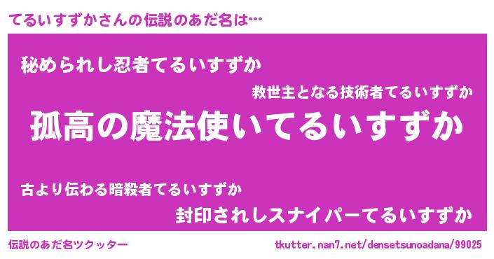 | ヒーロー風カッコイイあだ名 | 『仮面テルダー』『暗黒騎士テル』 |