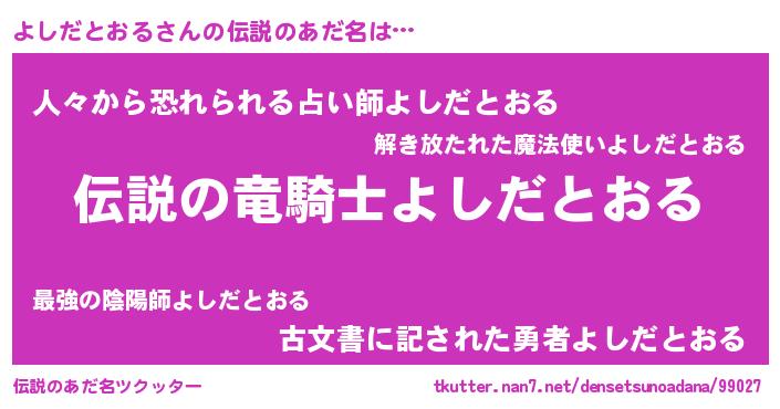 | ヒーロー風カッコイイあだ名 | 『スーパーヨシダトオル』『幻影騎士ヨシ』 |