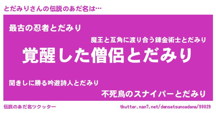| ヒーロー風カッコイイあだ名 | 『天弓騎士トダ』『ウルトラとだみりマン』 |