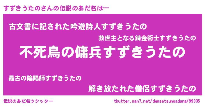 | ヒーロー風カッコイイあだ名 | 『スーパースズキウタノ』『炎刃騎士スズ』 |