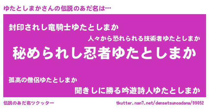 | 男性向けラノベタイトル風あだ名 | 『ユタトシマカスレイヤー』 |