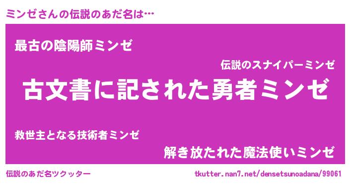 | ファンタジー風あだ名 | 『ミンディッシュ』『エターナルミンゼー』 |