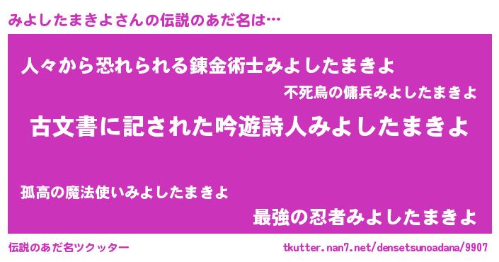 | ヒーロー風カッコイイあだ名 | 『ネオミヨシタマキヨ』『仮面ミヨダー』 |