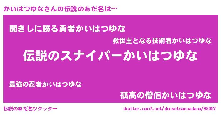 | 胡散臭い通販商品みたいなあだ名 | 『必ず成功する霊験あらたかなお札…その名も「かいはつゆな」』 |