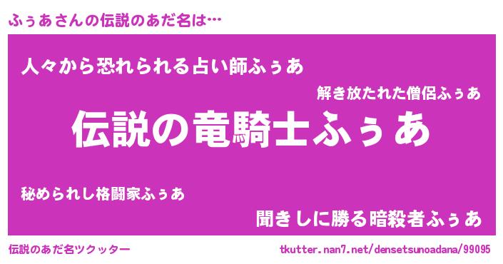| ヒーロー風カッコイイあだ名 | 『スーパーフゥア』『正義の使者ふぅあ』 |