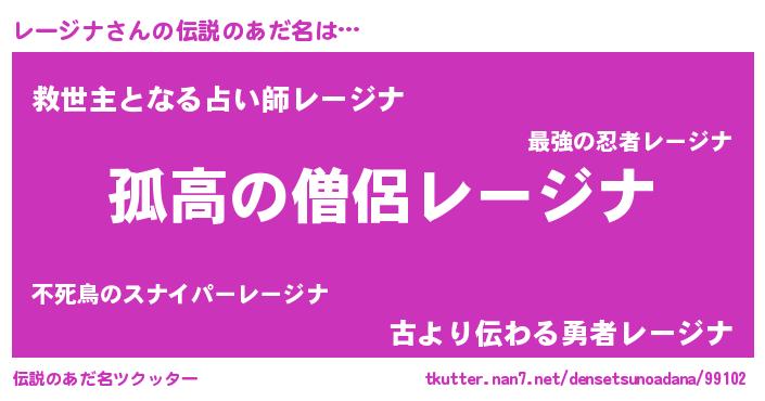 | 意味不明あだ名 | 『とにかく怪しいレージナ』 |