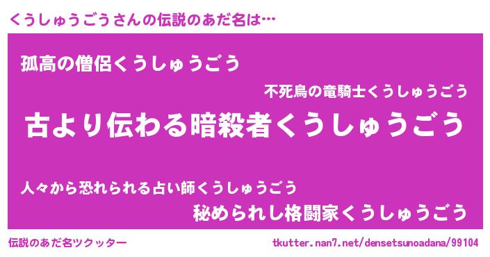 | ヒーロー風カッコイイあだ名 | 『ネオクウシュウゴウ』『仮面クウダー』 |