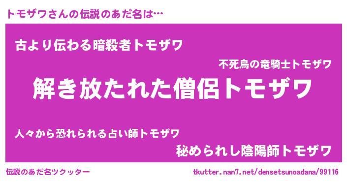 | ヒーロー風カッコイイあだ名 | 『最強戦士トモザワ』『銀牙騎士トモ』 |